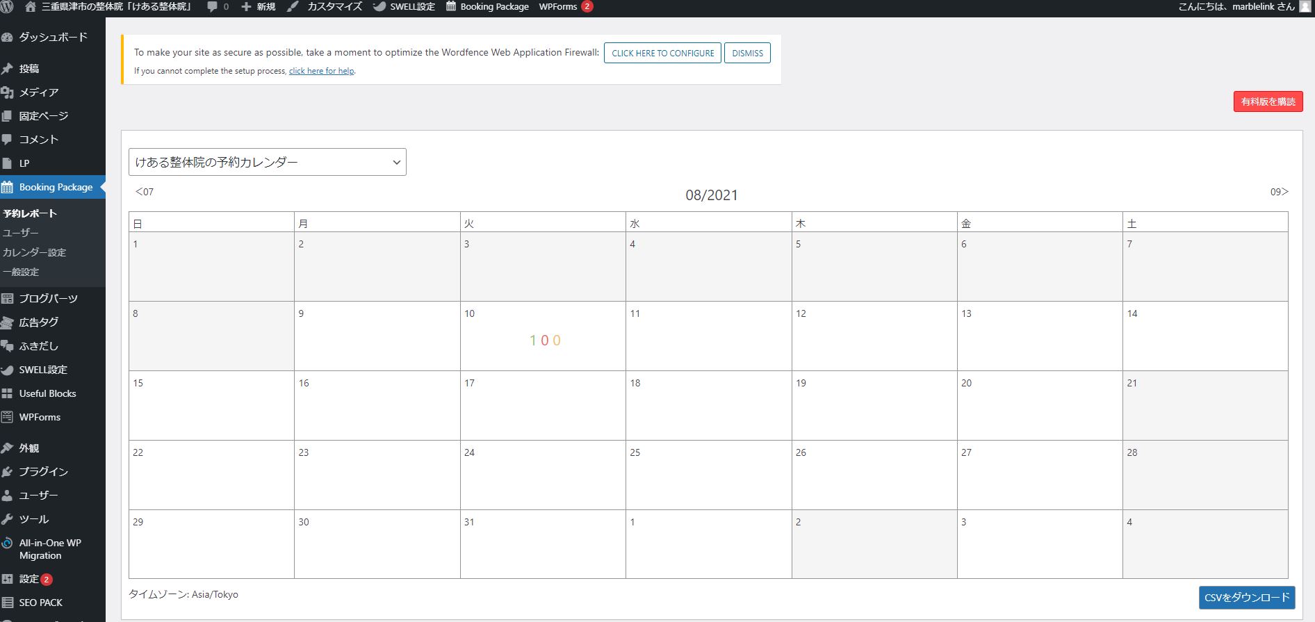 Booking Package 内には「予約レポート」「ユーザー」「カレンダー設定」「一般設定」の4つがありますが使わない機能もあるので1つずつ説明していきます。